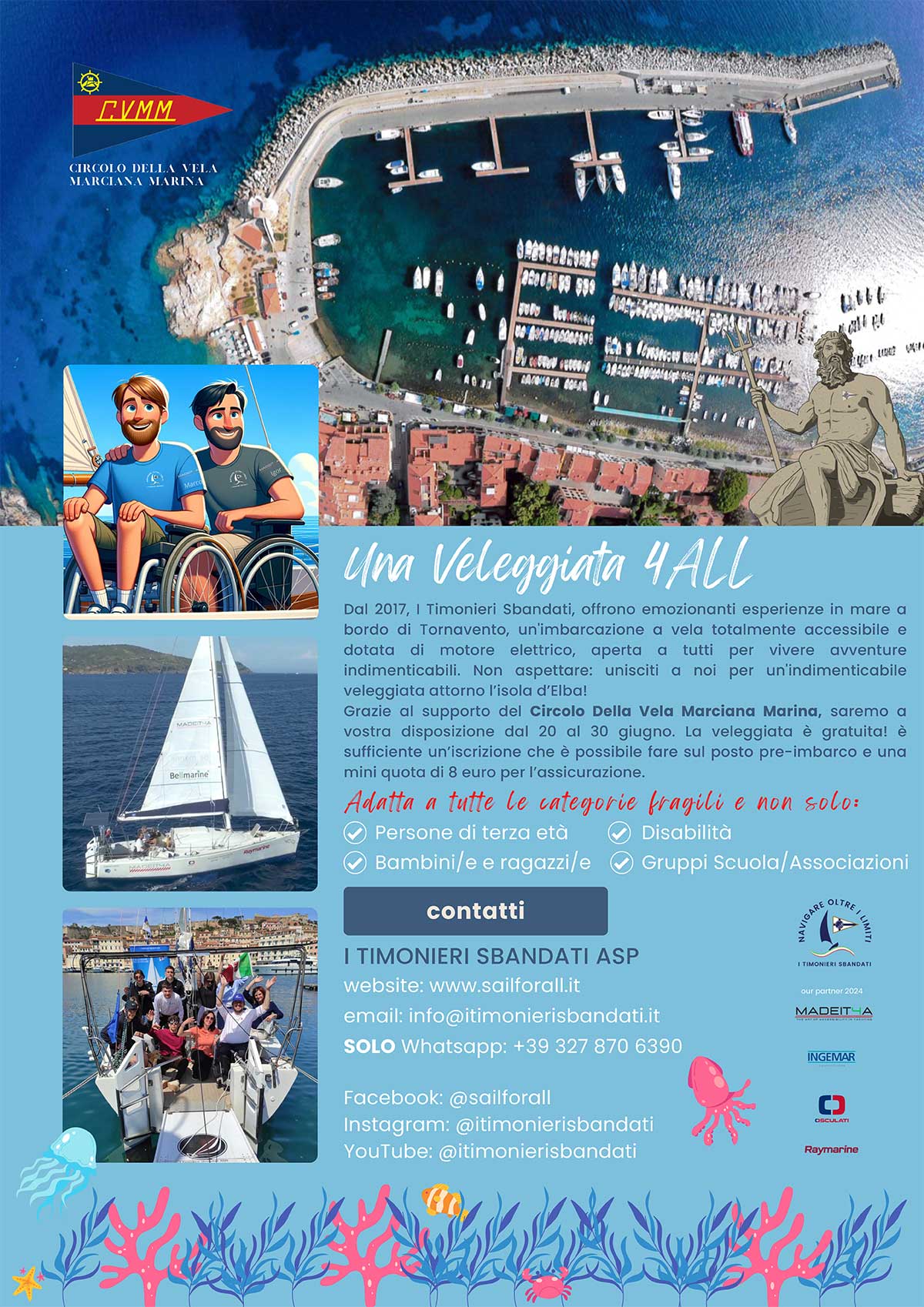 Vom 20. bis 30. Juni empfängt der Circolo della Vela Marciana Marina die Segler Marco Rossato und Igor Macera von Timonieri Sbandati ASD, dem Verein, der die Zugänglichkeit des Sports fördert für alle, besonders Segeln.