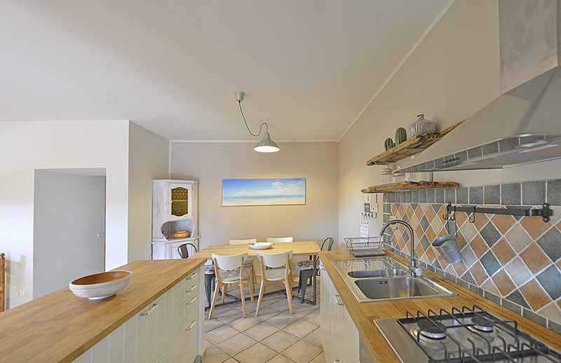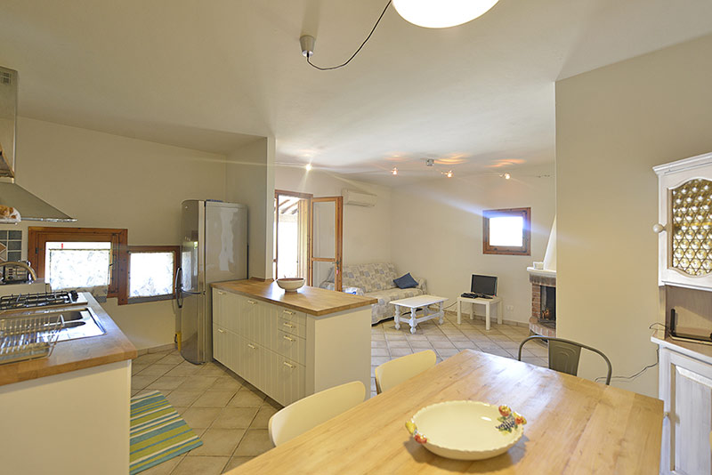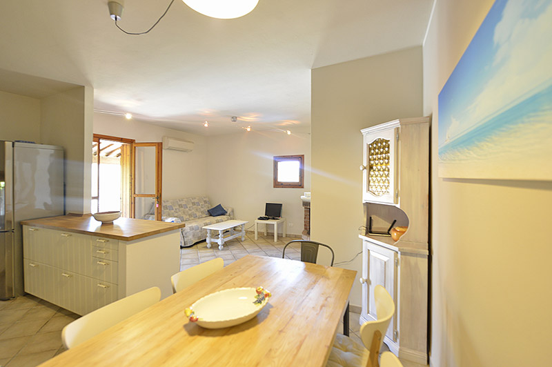 Die Wohnung Nr. 1 (Dreizimmerwohnung 4/6 Personen) besteht aus a großes Wohnzimmer mit Kochnische/Essbereich, Schlafzimmer mit zwei Einzelbetten (zusammenstellbare Betten), Schlafzimmer mit Doppelbett, Bad mit Dusche, möblierte überdachte Terrasse mit Panoramablick.