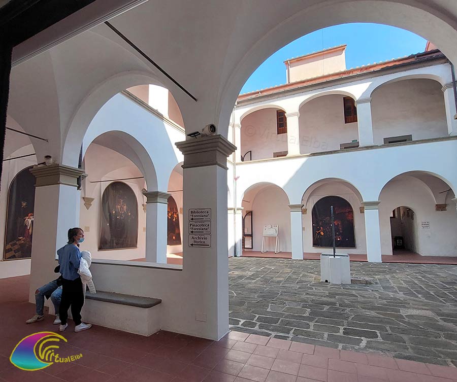 Kloster S. Salvatore und die kleine Kirche S. Cerbone; Elba war nie der begehrte Wohnsitz männlicher Religionsgemeinschaften, mit Ausnahme von zwei Hospizen oder Einsiedeleien der Kamaldulenser und zwei Franziskanerklöstern. Einer der letzteren wurde 1421 von den Observanten in der Kirche S. Cerbone im Tal von Marciana eröffnet, aber aufgrund des rauen Klimas und der Gefahren des Meeres, das die Ordensleute treffen mussten, um dorthin zu gelangen, wurde nach etwa fünfzig Jahren schwierigen Lebens geschlossen. Es scheint, dass die Gefahren des Seeverkehrs nicht nur imaginär waren, denn der erste Wächter des Klosters von Vetreta in Massa Marittima wurde von den Oberen nach San Cerbone nell’Elba , auf dem Rückweg ertrunken. Die Franziskaner kehrten nach Elba zurück, als Cosmopoli von Cosimo I. dei Medici gegründet wurde, der angesichts des „Mangels an Messen, Beichten und anderen kirchlichen Dingen in der neuen Stadt“, sagt ein Chronist, ein Observantenkloster mit dem Titel „Convento S. Salvatore“ eröffnete. und verpflichtete sich, 12 oder 13 Brüder zu unterstützen, indem sie ihnen das gleiche Essen wie das der Studenten der Universität Sapienza von Pisa reichten. Die erste Gruppe von Ordensleuten, die vom Minister der Franziskanerprovinz, Fra Berardo Draconcini, Beichtvater von Cosimo, entsandt wurde, bestand aus einem Vikar, einem Prediger und zwei Brüdern. Kurz darauf wurde auch ein Vormund für das Kapitel oder die Kongregation ernannt. Bald erreichten die Brüder die Zahl zwölf. Zusammen mit dem Kloster wurde auch mit dem Bau der S. Salvatore geweihten Kirche begonnen, die über neun Altäre verfügt und am 17. September 1606 vom Diözesanbischof Alessandro Petrucci geweiht wurde. Während das Kloster sehr arm war und selbst der Bau keinen Erfolg hatte, wurde die Kirche stattdessen mit herzoglicher Pracht ausgestattet und mit silbernen Kronleuchtern und Leuchtern ausgestattet. Nach den Franziskanerchroniken im Kloster von Portoferraio lebte und starb ein Laienbruder, Fra Battista da Rontano della Garfagnana, im Konzept der Heiligkeit für seine heroische Armut und Nächstenliebe.