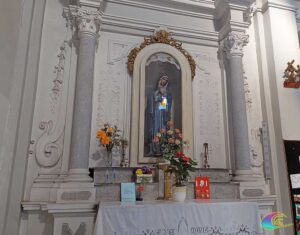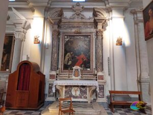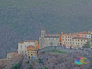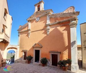 Die Kirche befindet sich am tiefsten Punkt der Stadt, wenige Meter nach dem Passieren des Stadttors Marciana Alta