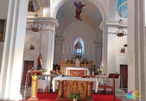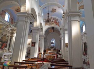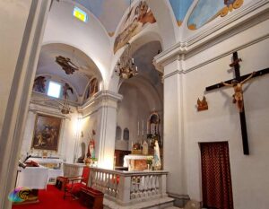 Die Kirche von Marciana wurde im 16. Jahrhundert erbaut. an der Stelle, an der sich eine ältere Kapelle befand, die in den Neubau integriert wurde. Durch die Neigung des Geländes variiert die Höhe der Außenfronten, von denen sich die Hauptfassade über dem kleinen Platz erhebt, während die südöstliche Ecke, überragt vom quadratischen Glockenturm, das Tal dominiert. Sie zählt zu den größten Kirchen auf Elba, mit drei Kirchenschiffen, einer hohen Höhe und einem teils segelförmigen, teils kreuzgewölbten Dach. An den Seitenwänden befinden sich acht Altäre aus dem 18. Jahrhundert, teils aus Mauerwerk, teils aus Marmor, auf denen die dazugehörigen Altarbilder erhalten sind. Das Taufbecken aus Granit stammt aus dem Jahr 1435 und wird von einer kleinen vergoldeten Holzstatue aus dem 18. Jahrhundert des „Baptist„.